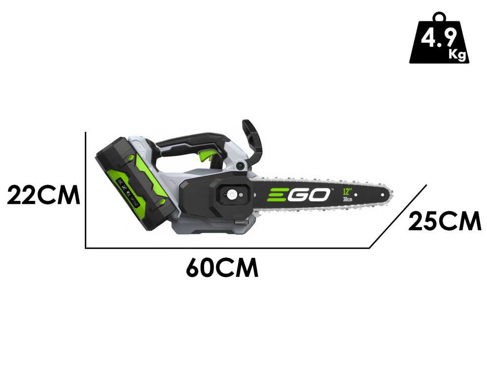 La motosega EGO CS 1200 E è una motosega cordless professionale alimentata da batteria 56V ARC Lithium™, pensata per potatura, lavori in quota, giardinaggio e applicazioni arboricole. È compatta e leggerissima rispetto alle alternative a benzina, dotata di motore brushless, barra 30 cm (12″) e velocità di catena fino a 20 m/s, offrendo prestazioni “equivalenti a 30 cc” senza fumi, rumore e manutenzione del motore a combustione.